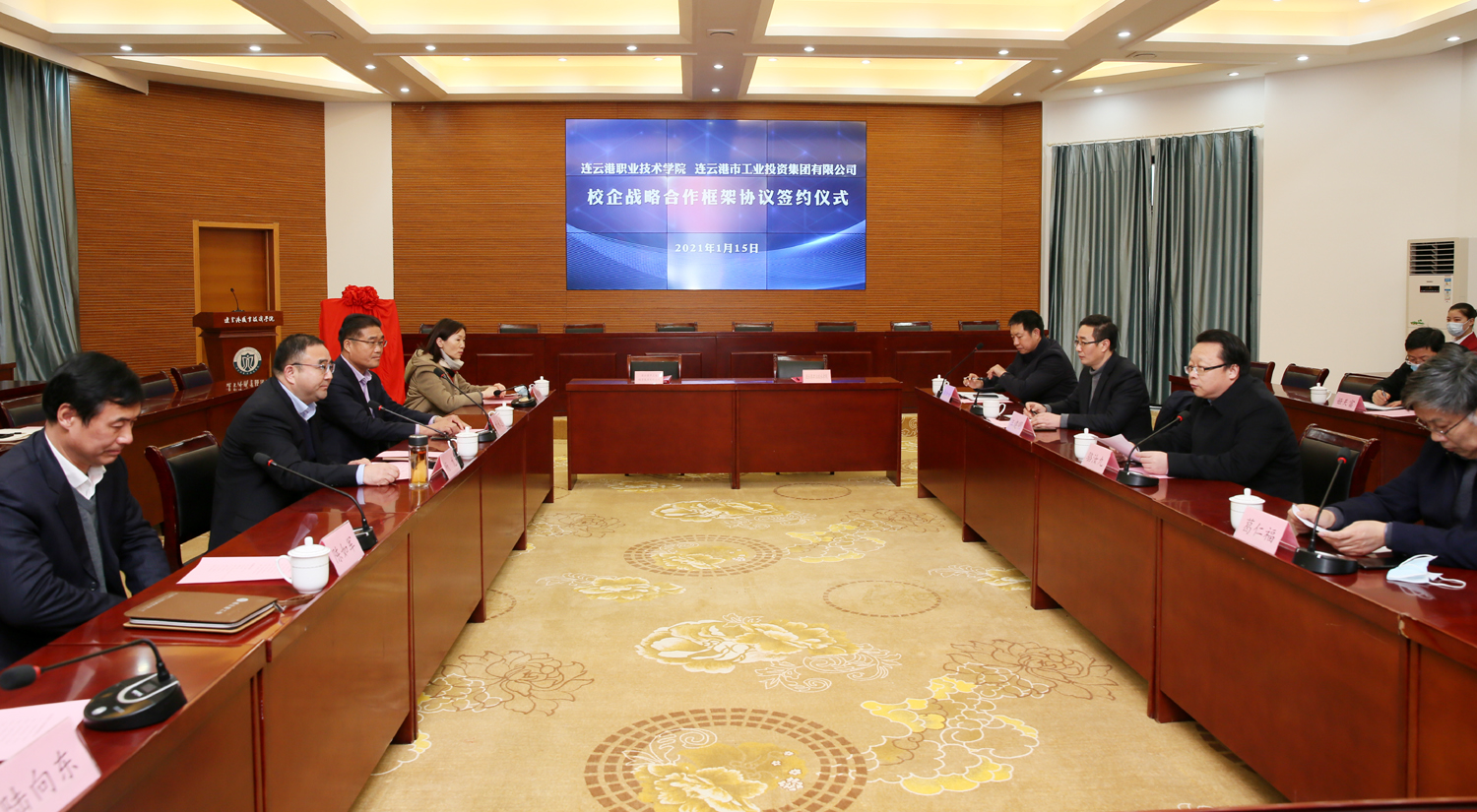 為深入推進產業工人隊伍建設改革,搭建職工教育培訓平臺,115日,在連云港職業技術學院舉行校企合作簽約儀式,并為集團公司職工培訓中心揭牌。集團公司黨委書記、董事長楊龍,工會主席劉承志,總經濟師陳如軍;連云港職業技術學院黨委副書記、校長駱汝九,副校長葛仁福、汪建明等領導出席活動。