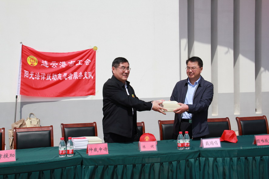 510日上午,受省總工會委托,連云港市總工會副主席陳健、法工部部長易懷麗和市法律援助志愿者一行15人,在集團公司工會主席戴鴻鳴、副主席盧同根等陪同下,來到工投集團華茂綠化工程公司,開展省市工會陽光法律援助志愿服務走基層“送法進企業”活動。來自工投集團及社會各界人士200余人參加了活動。