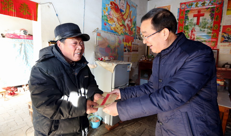 120日上午,集團公司總經理胡建明代表集團黨委專門來到對口扶貧點,贛榆區沙河鎮北朱果村走訪慰問貧困戶。在沙河鎮人大主席曹軍華的陪同下,胡建明共看望了十戶貧困戶,每到一家,都關切地詢問他們生產生活狀況和遇到的困難,勉勵他們堅定信心,樹立戰勝困難的勇氣,并為他們送去慰問金和節日的祝福。