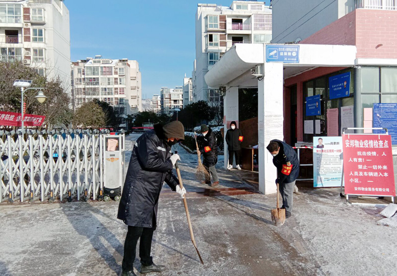 216日早晨730分,該公司以黨員干部、技術骨干為首的志愿者30余人,加入市政保潔隊伍,對徐圩新區西安路、祥和路、徐圩大道、徐新路等路段進行積雪清理,確保來往行駛車輛安全通暢無隱患。疫情防控卡口工作人員不畏嚴寒,堅守崗位,認真做好防控值守。為保障養殖戶生產生活需求,換班人員義務為其采購糧油、蔬菜、純凈水等生活物品,持續做好轄區養殖戶后勤保障工作。
