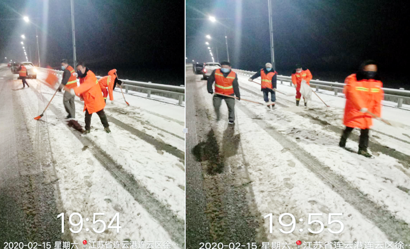 215日晚1800時,徐圩悅升公司班子成員及各分公司黨政負責人全員出動,帶領18名突擊隊員快速趕赴新區上海路、徐圩大道、徐新路、金港路等主要交通要道,連續奮戰4個多小時,對橋梁、彎道等重點防滑路段進行清雪防凍處理,共鋪灑融雪劑10余噸。“香河情緣、幸福家園”兩個職工小區防控疫情值守人員,不懼嚴寒,冒著大雪,在小區加強巡邏防控。該公司應急大隊按照徐圩新區防疫指揮部要求,配合社區對珠江鋼管相關路道進行封閉管控。