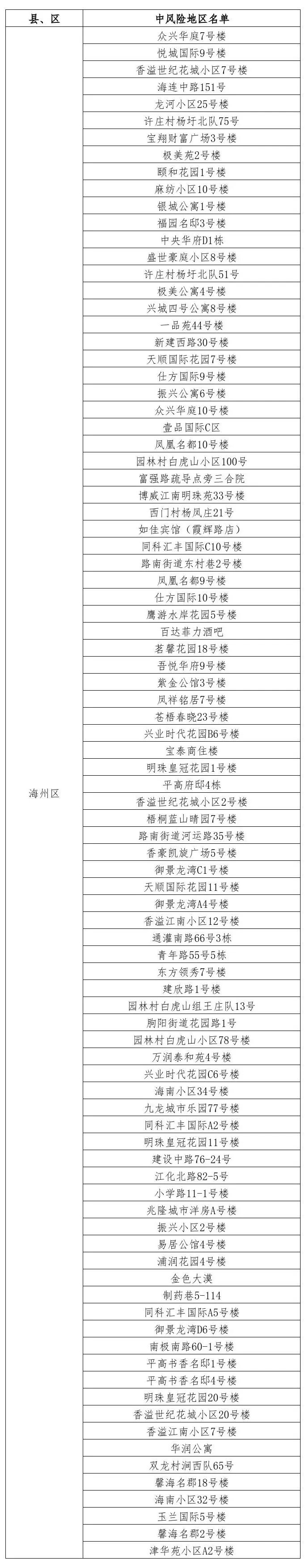 據國務院聯防聯控機制有關規定,經市指揮部研究決定,自發布之日起,對我市部分區域疫情風險等級進行調整: