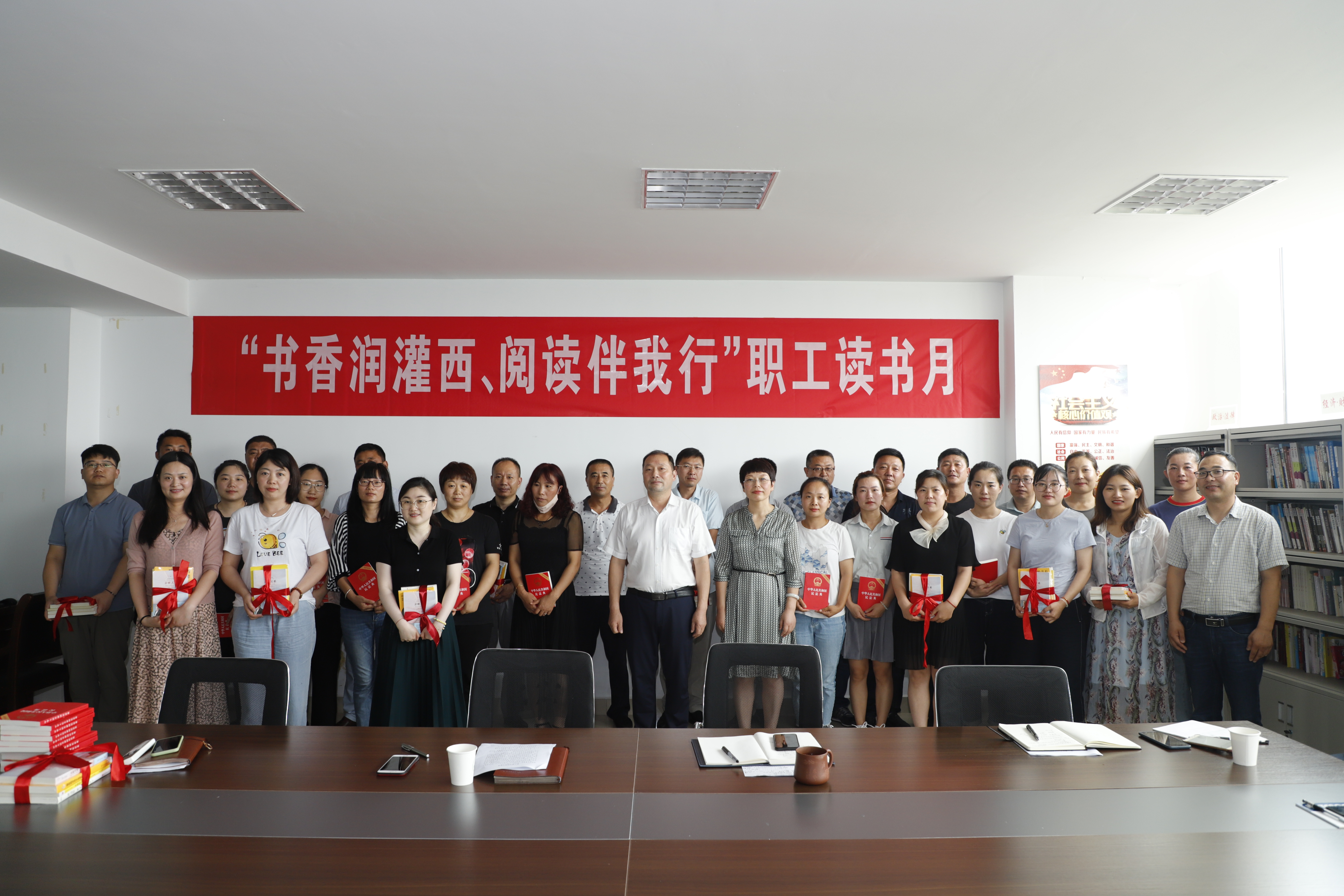 讀書正當時,莫負好時光。為大力倡導全民閱讀的生活方式,激發廣大干部職工愛書、讀書的熱情,灌西投資公司工會在產改如火如荼之際,開展“職工讀書月”“六個一”系列活動,全面提高廣大員工的人文素養。活動現場,黨委副書記、工會主席王宏作了熱情洋溢的致辭,工會副主席莊忠明著重宣讀了“職工讀書月”活動方案,楊婕、唐蕾榮等8名職工代表分享讀書心得、暢談讀書感悟,黨委書記、董事長李國文為10名基層分會主席、16名女工主任贈送了《讀書是一輩子的事》、《親密關系》等書籍,并作了語重心長、情真意切、字字珠璣的精彩講話。(灌西 工宣