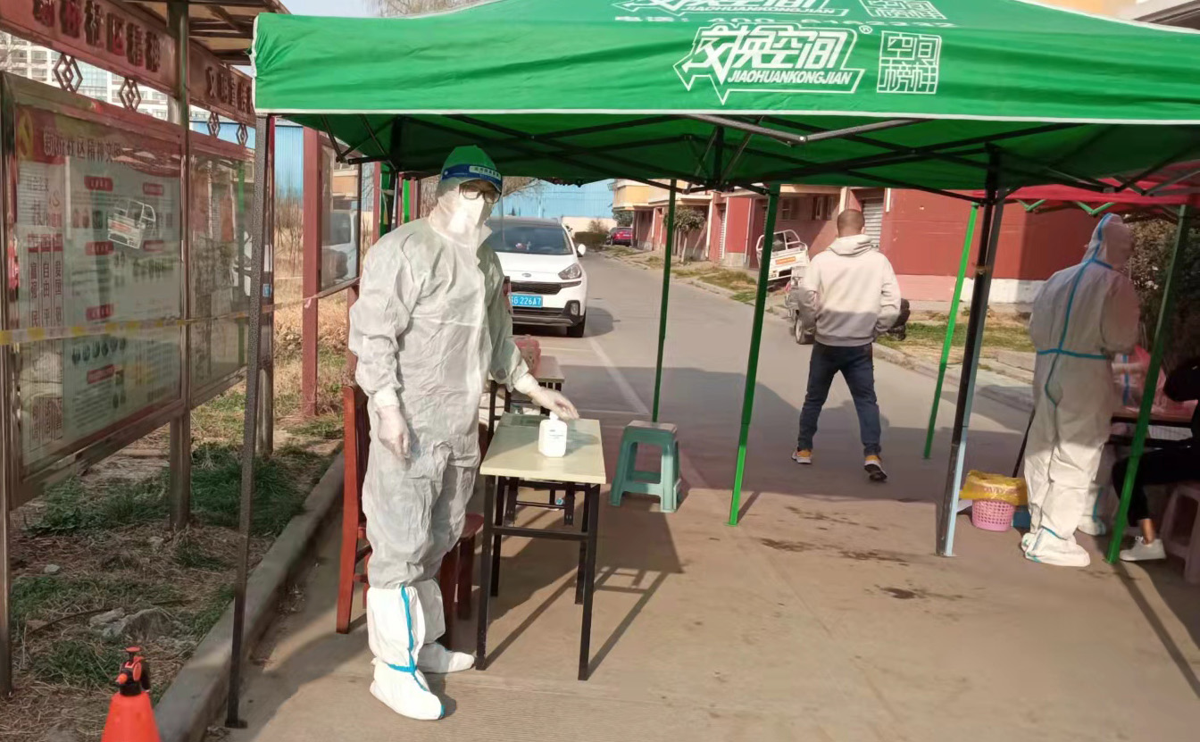 請打開“健康碼”,“姓名?居住幾號樓?這是第幾次參加核酸檢測……”310日,我市開啟第五次大規(guī)模核酸檢測工作。早上7點整,老黨員劉建舟來到海州區(qū)新月園小區(qū),開始核酸檢測點的信息登記工作。劉建舟今年58歲,是徐圩公司31年黨齡的老黨員,面對突發(fā)的疫情,他第一時間來到社區(qū),主動請求加入核酸檢測采樣點的志愿者隊伍。每天他認真做好小區(qū)1500余人信息登記、檢測場所消殺等工作,從早上一直工作到晚上8點,一天下來,腰酸背痛的他從凳子上一下子都起不來,當(dāng)筆者問到是什么讓他毅然堅持到一線參加志愿者服務(wù),劉建舟堅定地說:“因為我是一名黨員,在非常時期,我必須走在前頭,起帶頭作用。”