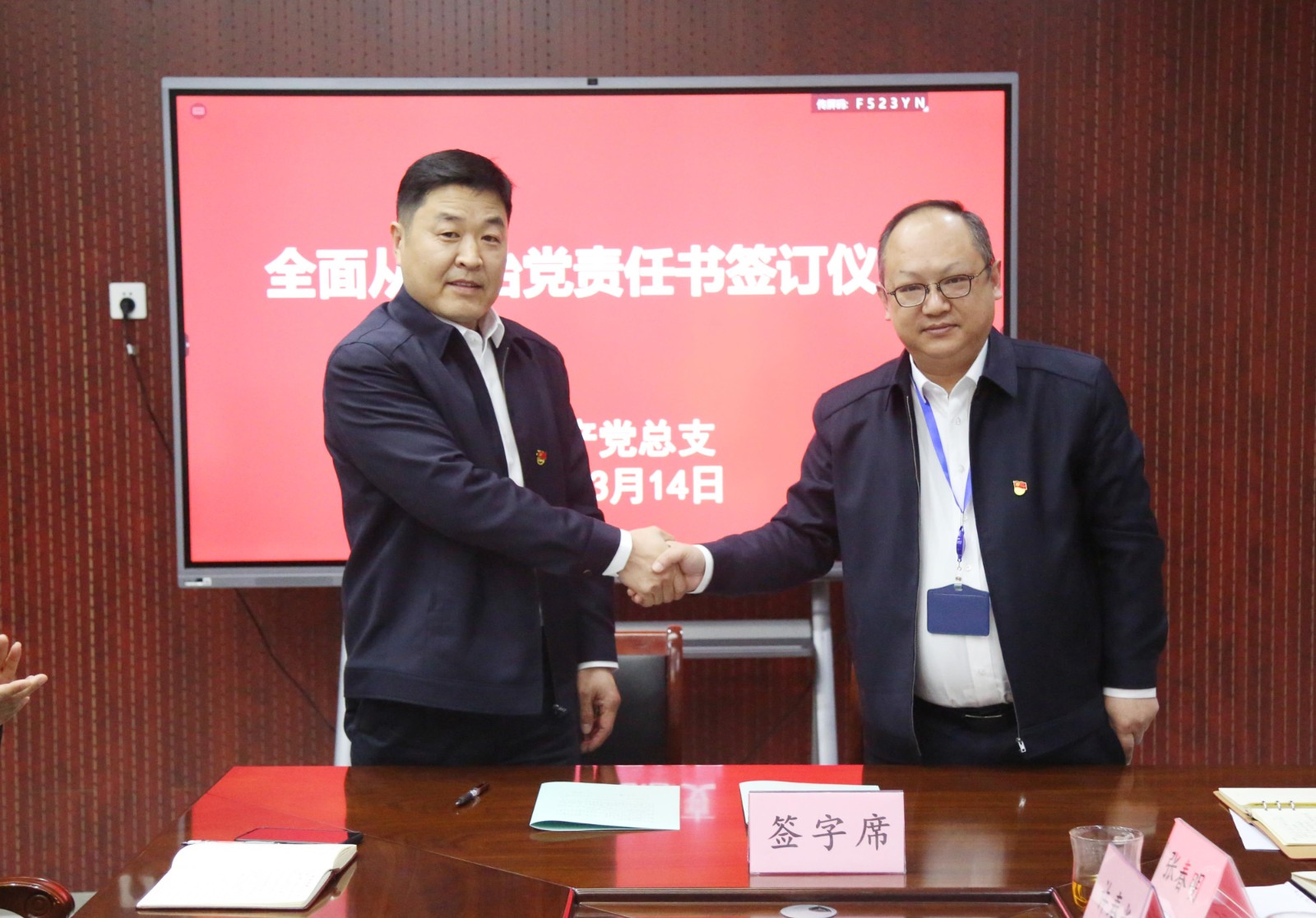 會上,與會人員觀看了廉政警示教育片,各黨支部簽訂了《全面從嚴治黨責任書》。