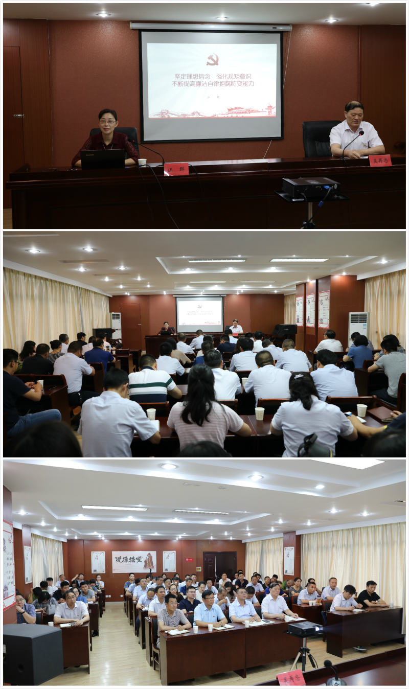 7月16日下午,集團公司紀委書記汪群在金橋房地產黨群服務中心會議室,為供電公司和房地產公司部分黨員講了一堂以“堅定理想信念,強化規矩意識,不斷提高廉潔自律拒腐防變能力”為主題,以黨風廉政教育與反腐敗警示教育為主要內容的專題黨課。雙方單位的領導班子成員、各基層單位班子成員、各部門負責人以及涉及招標采購、工程建設、財務審計等崗位相關人員參加黨課。黨課由供電公司黨委書記吳再忠主持。