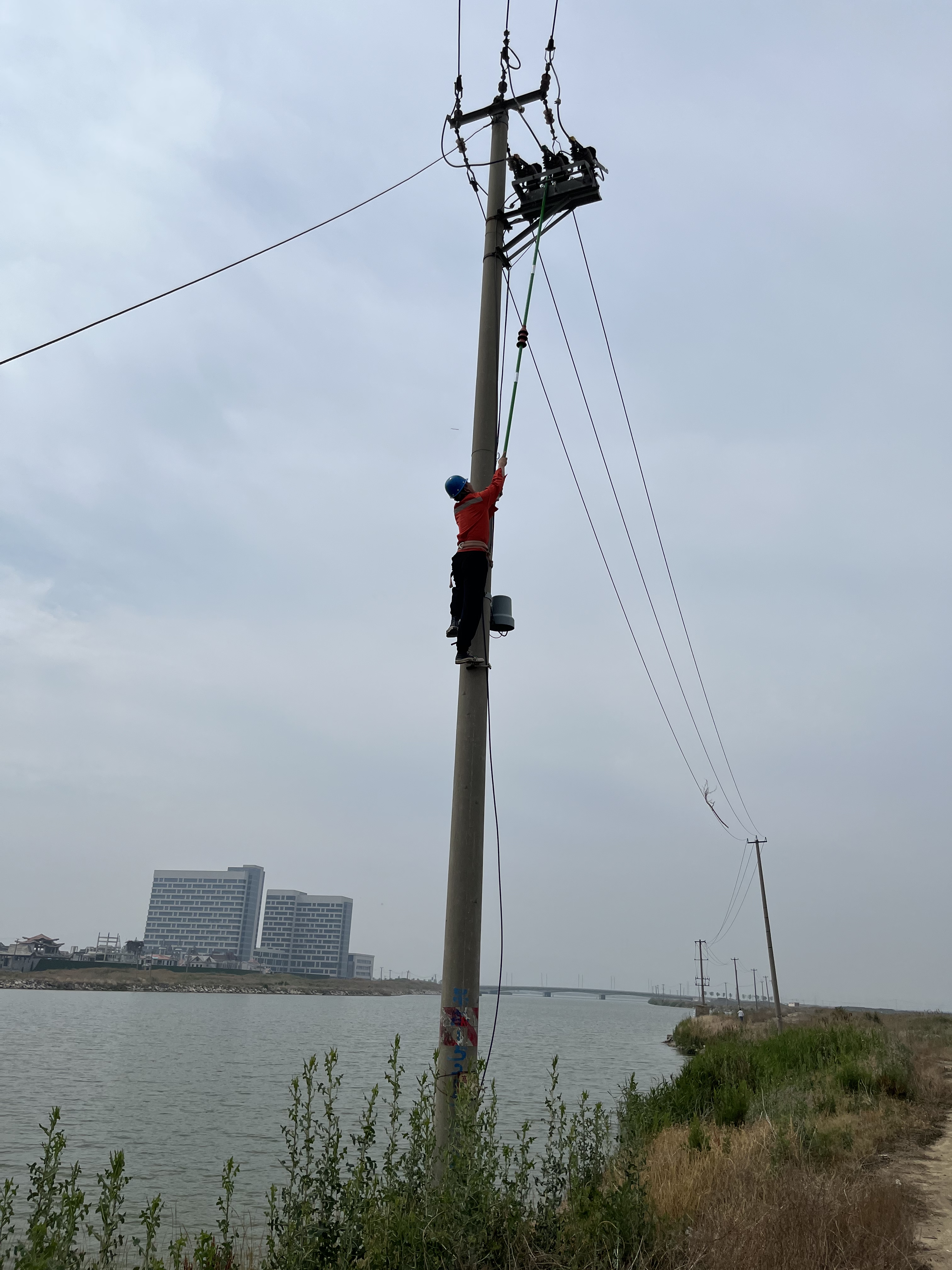 突如其來的雷暴惡劣天氣導致維保單位金海岸公司部分線路發生斷線事故,電力設施遭到破壞,惡劣天氣給維保單位的電網安全可靠供電帶來極大威脅,一場電網搶修保衛戰在暴風雨夜中打響……故障就是命令,接到搶修命令后,搶修人員迅速對故障線路進行巡視排查,夜間光線差,氣溫驟降十幾度,大風夾雜著雨滴、沙塵、落葉不時地抽打著搶修人員的臉頰,為了及時找到故障點,搶修人員與時間賽跑,克服面臨的種種困難,合理分工,冒雨頂風對故障線路逐級進行認真排查。經過 工作人員不懈努力,故障點被發現并完成修理,顧不上休息,工程營銷部巡視人員便又投身事故搶修中去,清理樹障、更換瓷瓶、緊固導線……工程營銷部 鄭皓