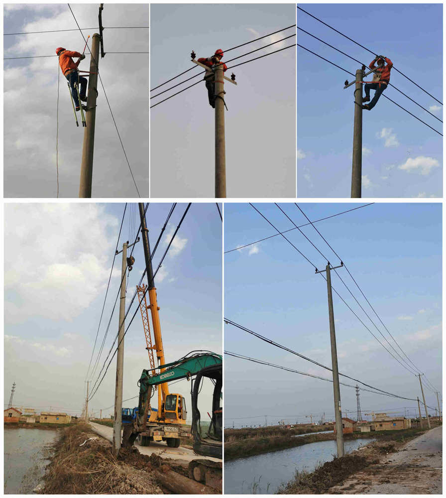 下午3時(shí)05分,青口供電所線路工王兜柱按照所里安排對(duì)轄區(qū)線路及設(shè)備進(jìn)行安全巡視,發(fā)現(xiàn)新站線72號(hào)高壓桿傾斜嚴(yán)重,經(jīng)過(guò)仔細(xì)勘察發(fā)現(xiàn)電桿根部已經(jīng)斷裂,他立刻上報(bào)說(shuō)明情況故障就是命令供電所立即安排副所長(zhǎng)王建前往事故現(xiàn)場(chǎng)再次勘察,聯(lián)系機(jī)械、組織人員進(jìn)行安全交底、具體分工準(zhǔn)備材料并以微信群電話等方式,做好停電告知和解釋工作,緩解居民、養(yǎng)殖戶、育苗廠等用戶情緒。5時(shí)13分備用電桿運(yùn)送到位,按照規(guī)程要求停電、驗(yàn)電、掛接地,拆除段桿立新桿、重新緊導(dǎo)線,經(jīng)過(guò)1個(gè)多小時(shí)的通力協(xié)作搶修,6點(diǎn)22分新站線500余戶居民,近萬(wàn)畝池塘,一座揚(yáng)水站等用戶,全部恢復(fù)正常供電。