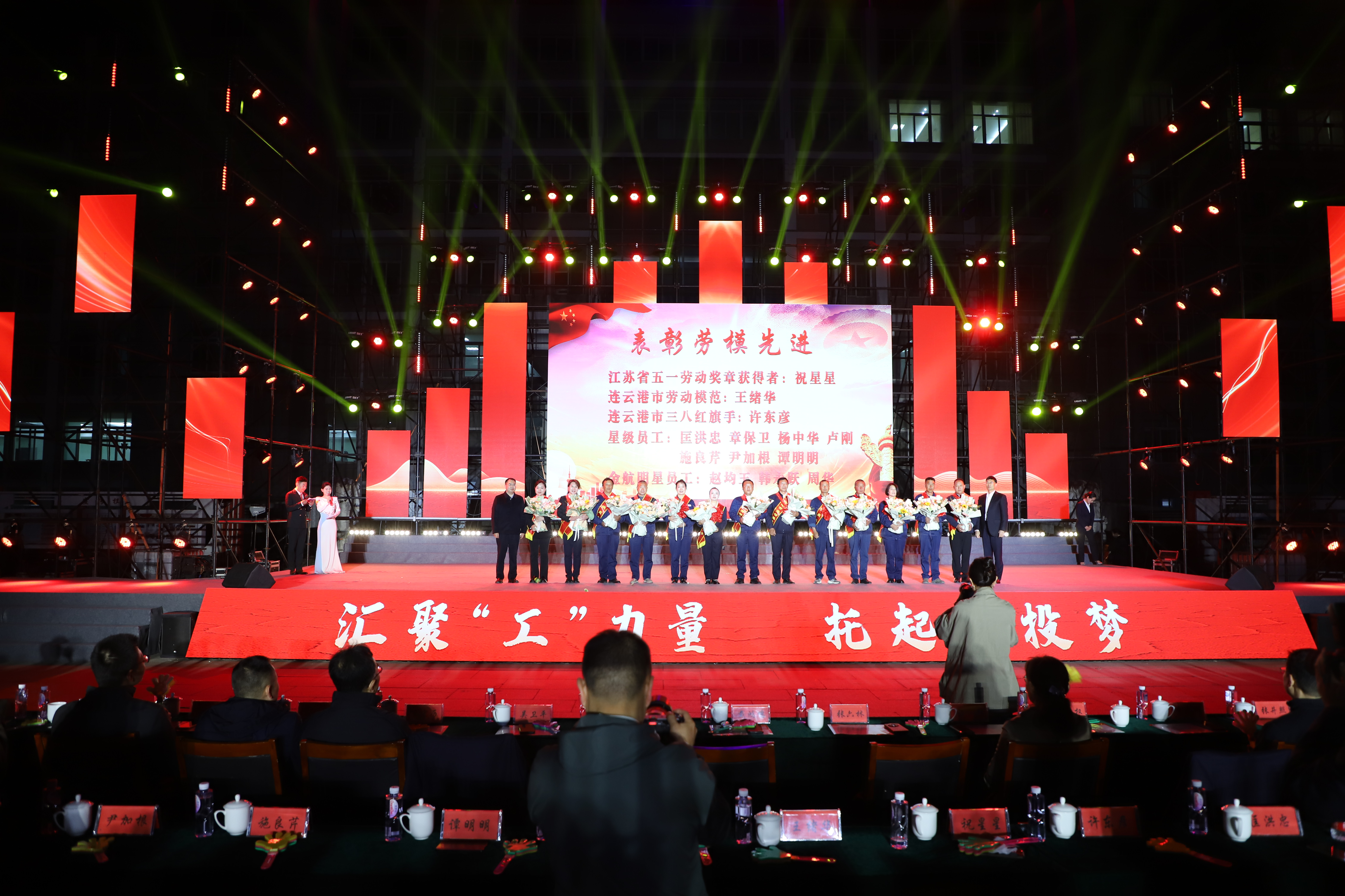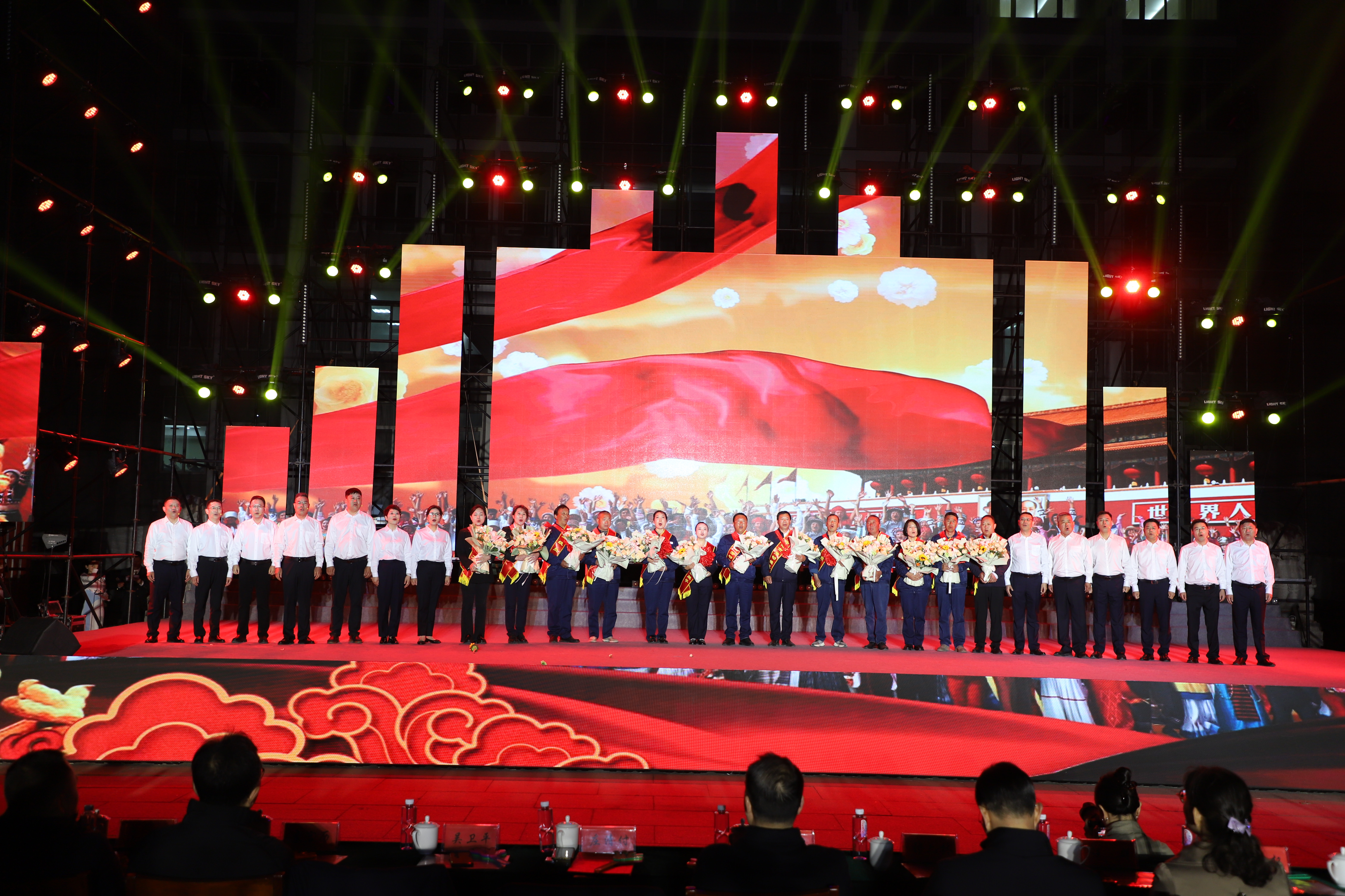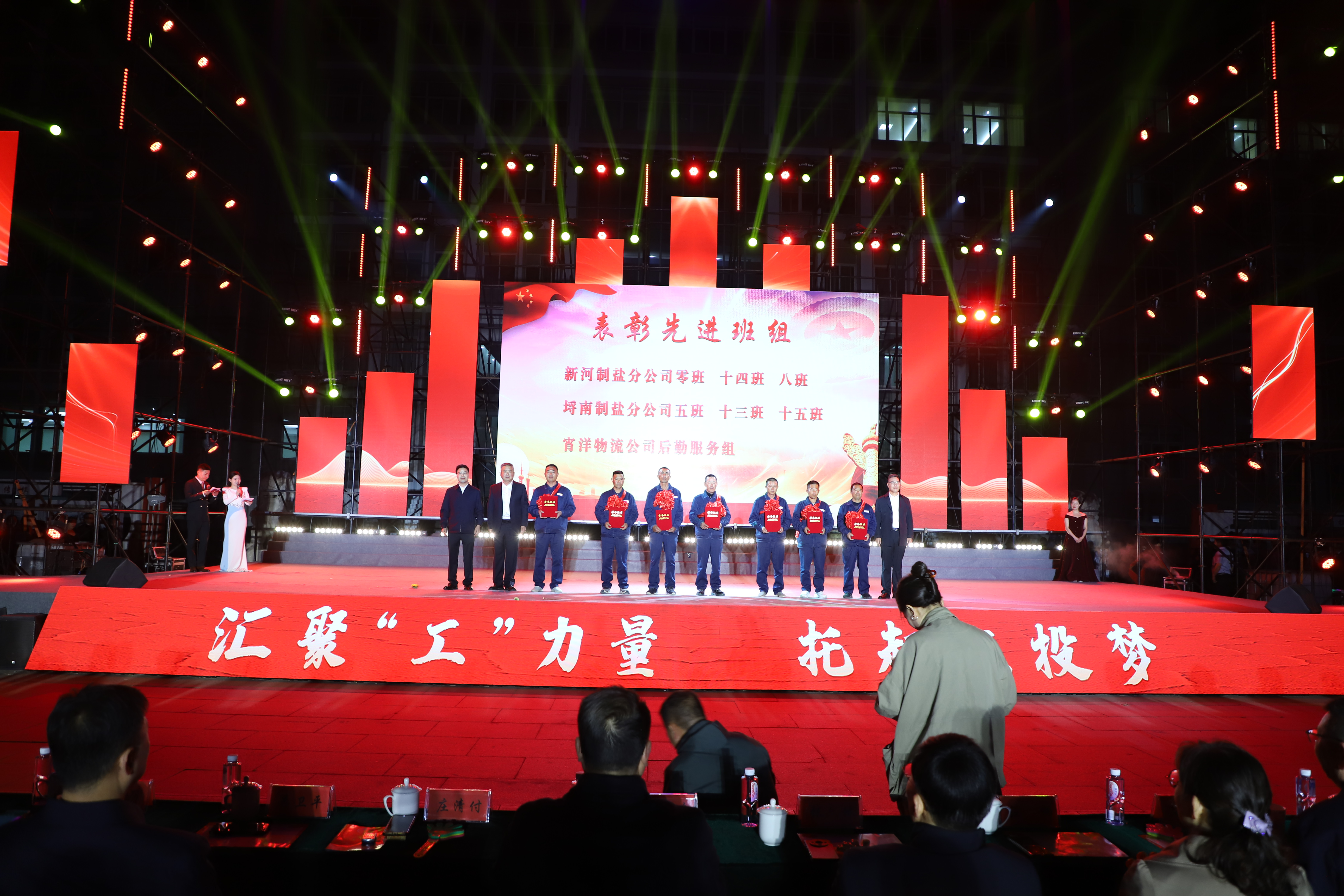 本次文藝匯演有歌舞、三句半、音樂快板、朗誦、相聲、歌曲串燒、歌曲獨(dú)唱、大合唱等豐富多彩的節(jié)目,其表演形式和精彩內(nèi)容引人入勝,火熱絢麗的舞臺(tái)、貼近職工生活的節(jié)目內(nèi)容、公司熱火朝天的奮斗場景,呈現(xiàn)了灌西人對企業(yè)的深沉情感和對工作生活的激情與熱愛。演出在開場群舞《盛世歡歌》拉開帷幕,整個(gè)演出分為“禮贊·勞動(dòng)最光榮”“鑄魂·勞動(dòng)最崇高”“閃耀·勞動(dòng)最美麗”“輝煌·勞動(dòng)最偉大”四個(gè)篇章,三句半《凝心聚力譜新篇》、舞蹈《沸騰的鹽灘》、音樂快板《后發(fā)先至看工投》等都是灌西職工自編自演的節(jié)目,充分展現(xiàn)了灌西員工朝氣蓬勃、奮發(fā)向上的精神面貌,以及對公司創(chuàng)新發(fā)展、職工幸福安康的美好祝愿。灌西公司黨委書記、董事長孫政權(quán)和金航公司黨總支書記、總經(jīng)理莊清付分別登臺(tái)獻(xiàn)藝,為大家表演了歌曲獨(dú)唱《我是一條小河》和配樂詩朗誦《我驕傲,我是中國人》,得到職工觀眾們熱烈的掌聲。小合唱《咱們工人有力量》、大合唱《新時(shí)代新家園》《沒有共產(chǎn)黨就沒有新中國》等節(jié)目把現(xiàn)場的氣氛推向了高潮,有力展現(xiàn)了全公司職工們激情澎湃、昂揚(yáng)奮進(jìn)的精神面貌。在文藝演出中間,還分別對公司各條戰(zhàn)線的勞模先進(jìn)代表、先進(jìn)單位、部門和班組進(jìn)行了表彰。(西宣)