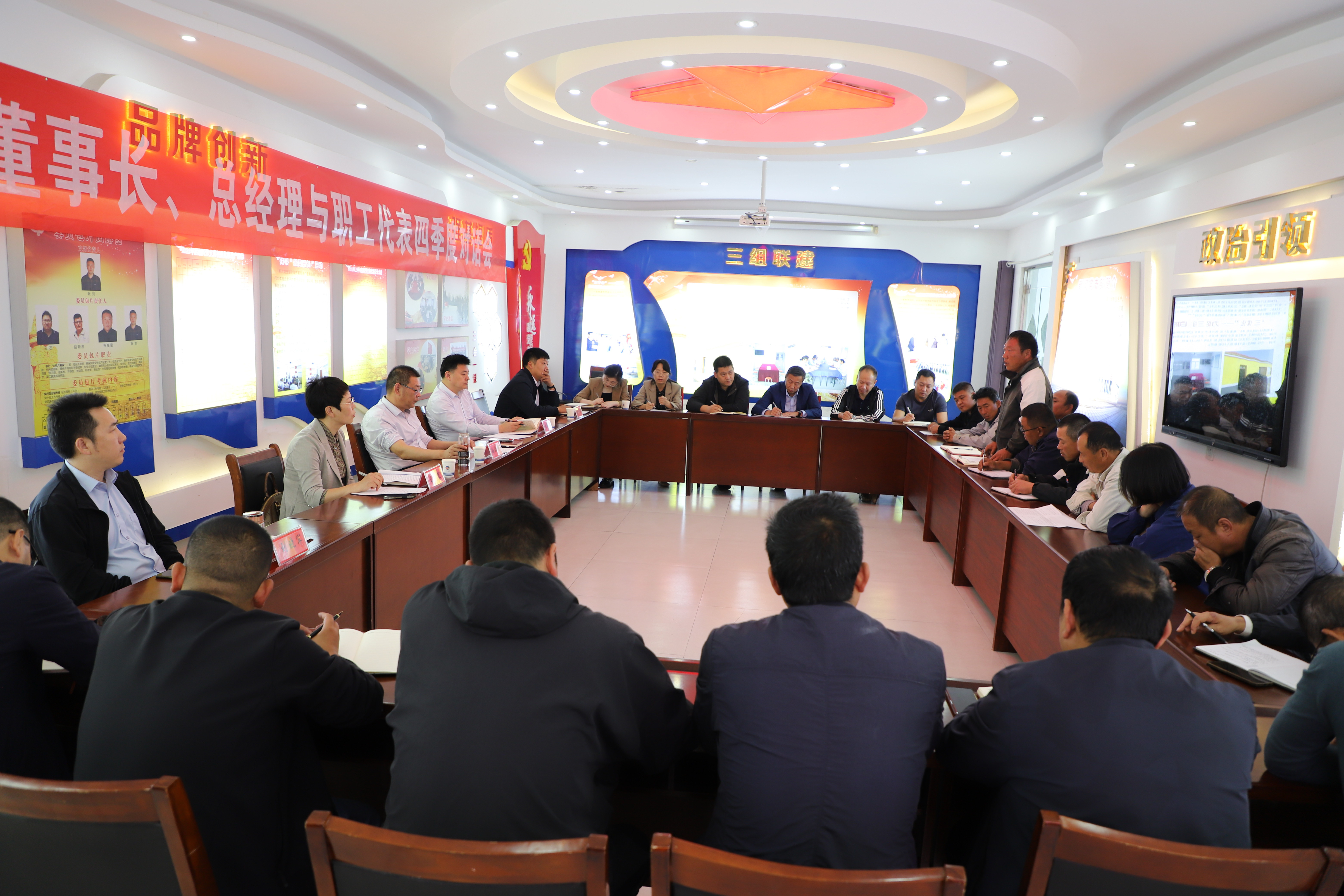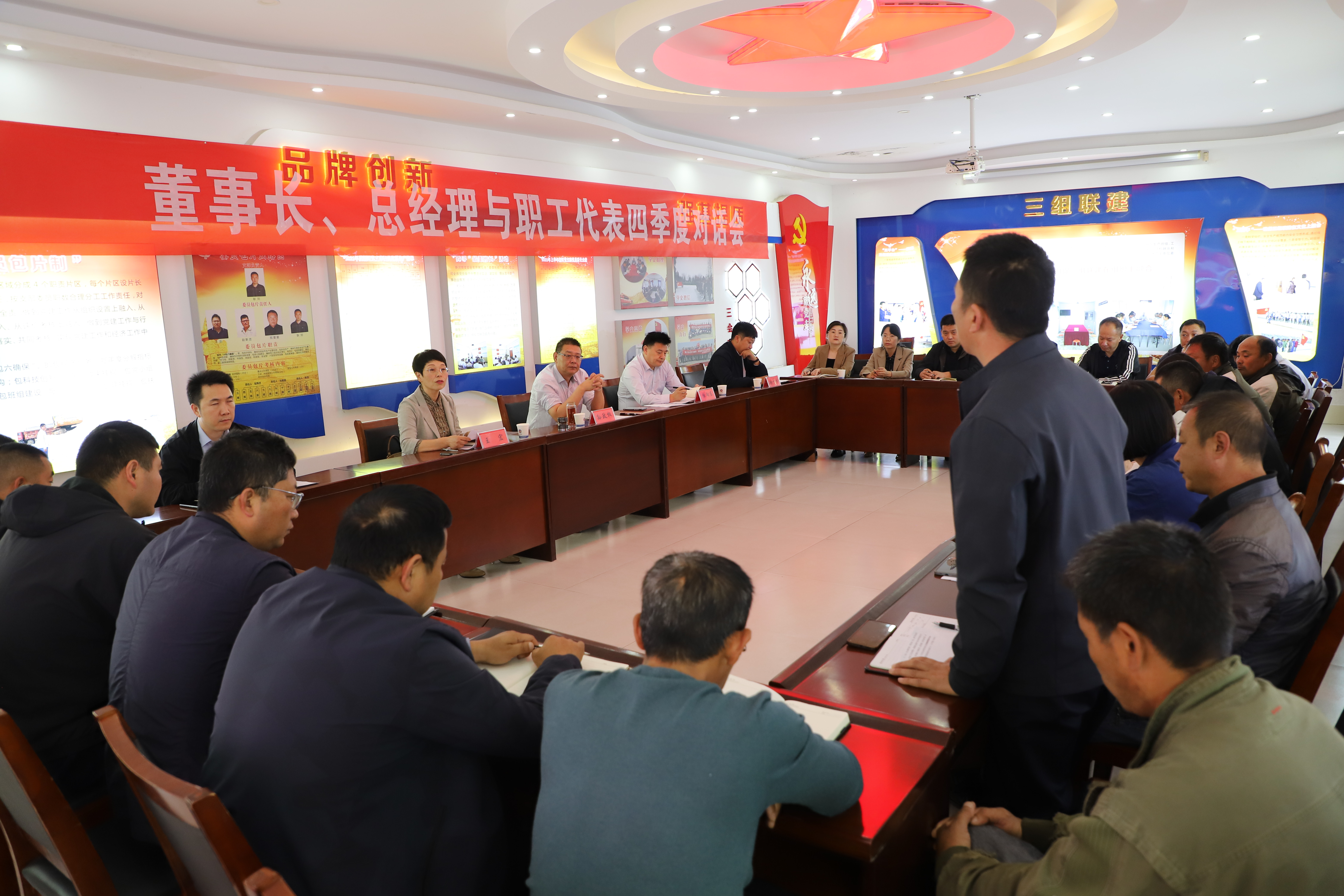 2023年10月19日下午,產業工人代表與公司董事長、總經理齊聚一堂,就生產生活中遇到的問題提建議、獻良策。