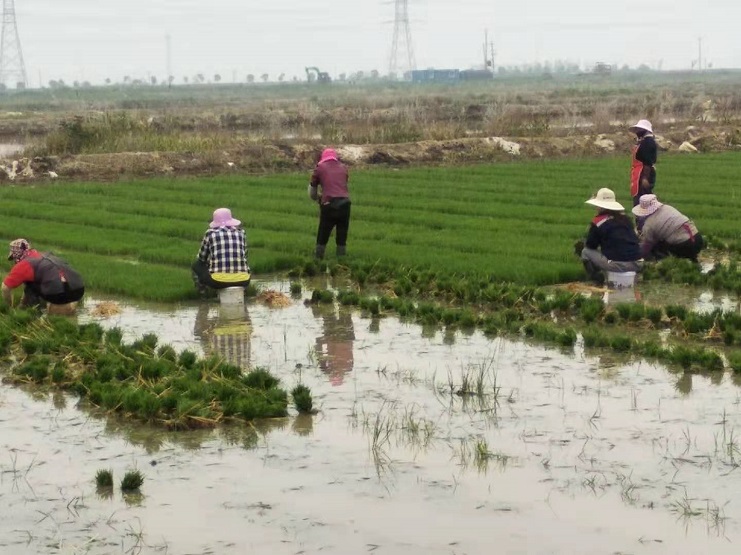 連日來(lái),工人們克服天氣炎熱等因素,搶時(shí)間趕進(jìn)度。在明威公司稻田里隨處可見(jiàn)一片繁忙景象:拔秧的,捆秧的,插秧的,她們按照勻、整、齊的標(biāo)準(zhǔn),不一會(huì)兒,一排排秧苗整齊地立在了水田中,構(gòu)成一幅美麗的田園畫(huà)卷。