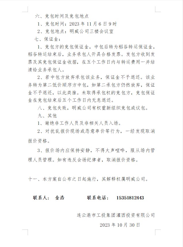 2023年灌西投資公司秋收稻谷轉運 業務發包二次公告