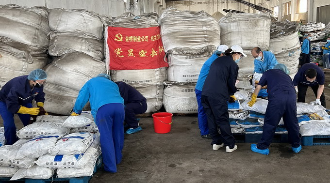 6月6-67日,我公司黨委開展“我為黨旗增光添彩”志愿服務活動。機關支部共30名黨員協助車間整理庫房,共整理成品鹽130余噸。活動的開展進一步發揮了“兩個作用”,積極踐行了志愿服務精神,為車間一線辦實事、解難題。(金宣)