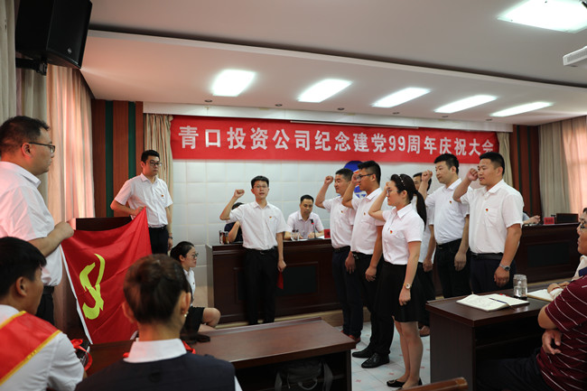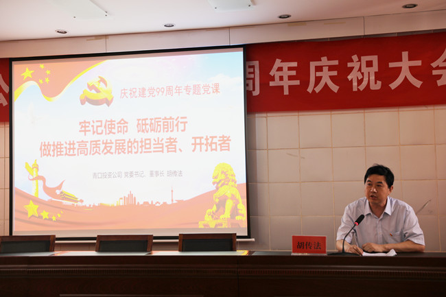 為了慶祝中國共產黨建黨99周年,繼承和發揚黨的光榮傳統,彰顯基層黨組織的戰斗堡壘作用和黨員先鋒模范作用,628日上午,青口投資公司隆重召開紀念建黨99周年慶祝大會暨“七一”表彰大會。會議由黨委副書記、工會主席梁永主持,全體領導班子成員、各單位黨政負責人、優秀黨員代表、機關全體管理人員參加會議。