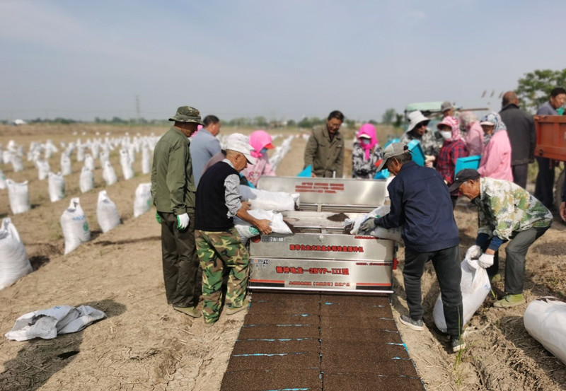 5月9日,大新農(nóng)場全面啟動(dòng)育秧作業(yè),工人們在水稻育秧播種機(jī)兩側(cè),分工有序地進(jìn)行流水線育秧,確保農(nóng)業(yè)生產(chǎn)開好局、起好步。據(jù)統(tǒng)計(jì),今年自營農(nóng)田共6228畝,預(yù)計(jì)需播機(jī)插秧27萬盤。(劉楊)