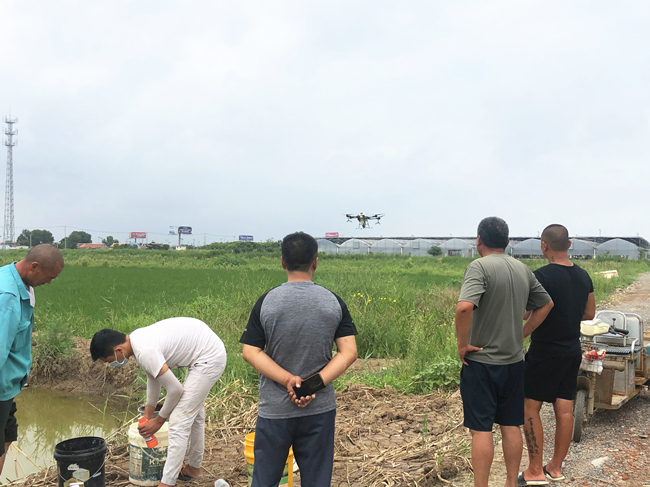 據生態種養中心嚴鑫介紹,現在正值多雨高濕天氣,水稻易發稻瘟病、稿飛虱、稻縱卷葉螟等病蟲害,為了做好水稻的病蟲害高效防治及除草工作,需要用無人機在稻地進行打藥作業。