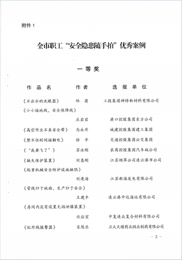 公司員工在全市職工“安全隱患隨手拍”活動中獲獎