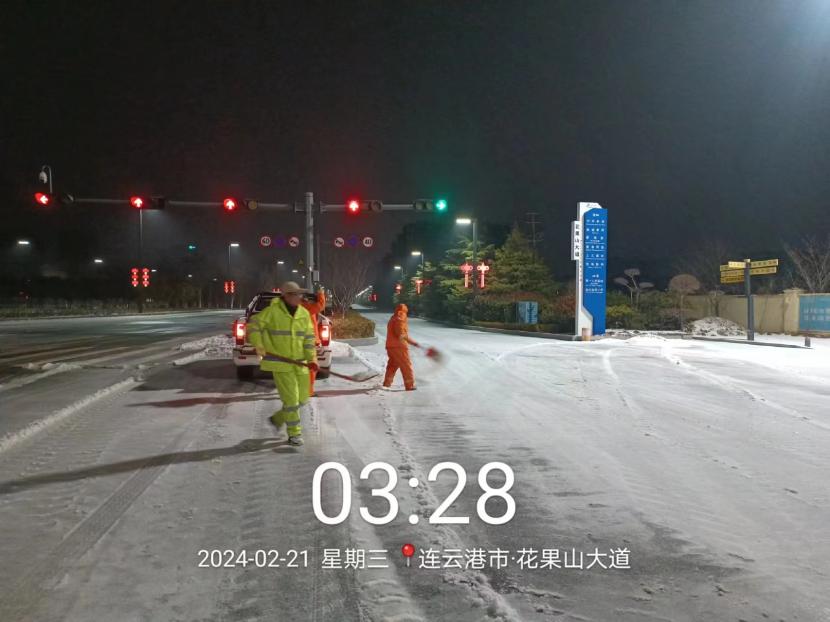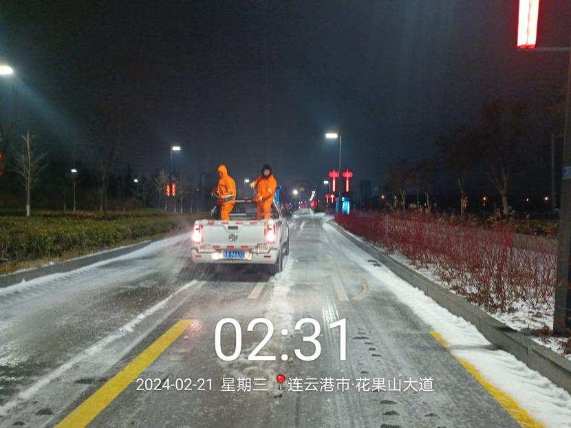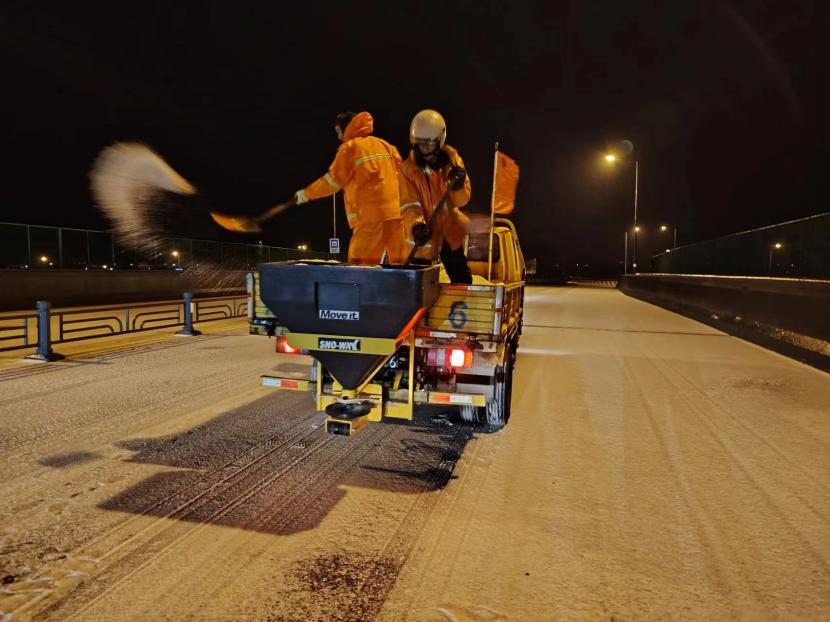 受寒潮影響,2月20日下午,港城普降“冰雪+冰粒”,投資公司第一時間啟動惡劣天氣應急處置預案,道路保潔、市政養護、后勤保障等戰線的干部職工以雪為令,在重點區域、重點路段、坡道、橋梁、涵洞等結冰路段進行撒鹽融雪融冰作業,全力以赴除冰雪、防事故、護平安,為市民群眾出行一路“護航”。
