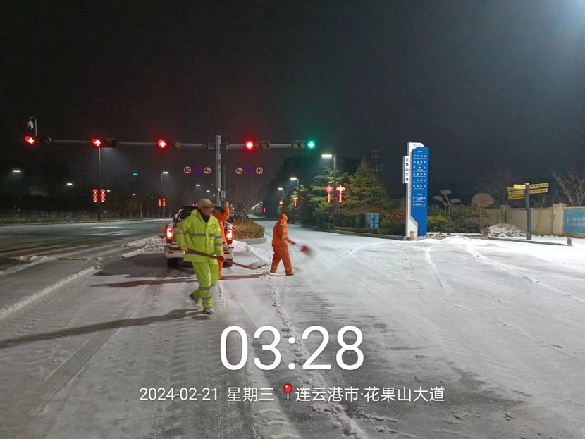 ? ? 2月20日晚,港城迎來了新一輪大范圍降雪,大部分地區(qū)出現(xiàn)凍雨伴冰粒天氣。為保障群眾出行安全,益豐園林分公司以雪為令,副經(jīng)理孫杰帶領徐明磊、樊如軍、朱文健3名黨員同志迅速反應,快速出擊,身披“橘”甲,浴“雪”奮戰(zhàn)。傍晚6點開始,從新光路涵洞區(qū)域到花果山大道東側,先鋒大橋至黃海大道區(qū)域,再到東方續(xù)道至大港東路路段,4名同志不分晝夜,連續(xù)奮戰(zhàn),不間斷巡查,發(fā)現(xiàn)積雪立即鏟除,及時消除道路安全隱患,共計撒布融雪劑8余噸,積雪清理成效明顯,為周邊群眾出行開辟出一條“溫暖平安路”。