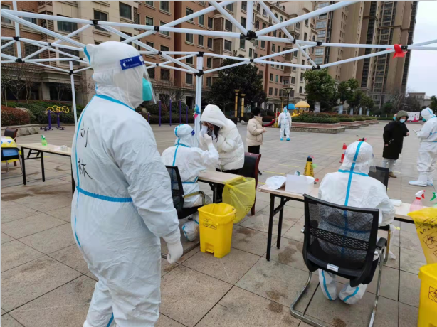 3月15日,公司緊急發(fā)通知,需要一名志愿者進(jìn)駐同科志愿服務(wù)。與以往志愿服務(wù)性質(zhì)不同的是,這次要24小時(shí)駐扎在同科,晚上也只能睡臨時(shí)搭建的帳篷。劉林,作為公司年齡最小的員工,卻在第一時(shí)間自告奮勇的報(bào)名。志愿服務(wù)的第一天,劉林先學(xué)習(xí)穿脫防護(hù)服、鞋套,然后協(xié)助工作人員采集信息、檢查健康碼、維持現(xiàn)場(chǎng)秩序、解答居民的各種問(wèn)題。這樣的工作,從早晨一直持續(xù)到晚上。簡(jiǎn)單吃完晚飯,緊接著是補(bǔ)錄綠碼人員。等所有工作結(jié)束,再進(jìn)行周圍環(huán)境的全面消殺工作。防護(hù)服一穿就是一整天,每每脫下時(shí),已是皮膚發(fā)皺、衣服濕透,面屏里泛滿水珠……已經(jīng)連續(xù)工作2天的劉林說(shuō),“累,但我們必勝,堅(jiān)持就是勝利!”