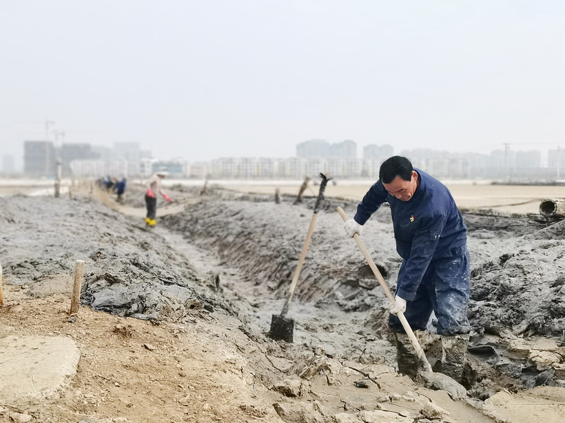 近日,迎著初春的風走進昌圩班組,在印有醒目“開局就是決戰,起步就是沖刺”的橫幅下,退休黨員朱春年正帶領職工撩溝做堰,更換結晶池塑料布等。兩鬢斑白的朱組長士氣毫不減當年,一邊忙一邊說:“昌圩結晶池因灘工撂荒較嚴重,冬準工程量大,為了能完成公司冬準計劃,我們把海濱、程圩職工都抽調過來了,過年都在干活,目前這邊1000畝結晶池已經完成,春節期間灌了一部分,現在天時好,我們得抓緊時間,早灌池,早落鹽!你們自己轉轉、看看吧,我實在太忙了····。