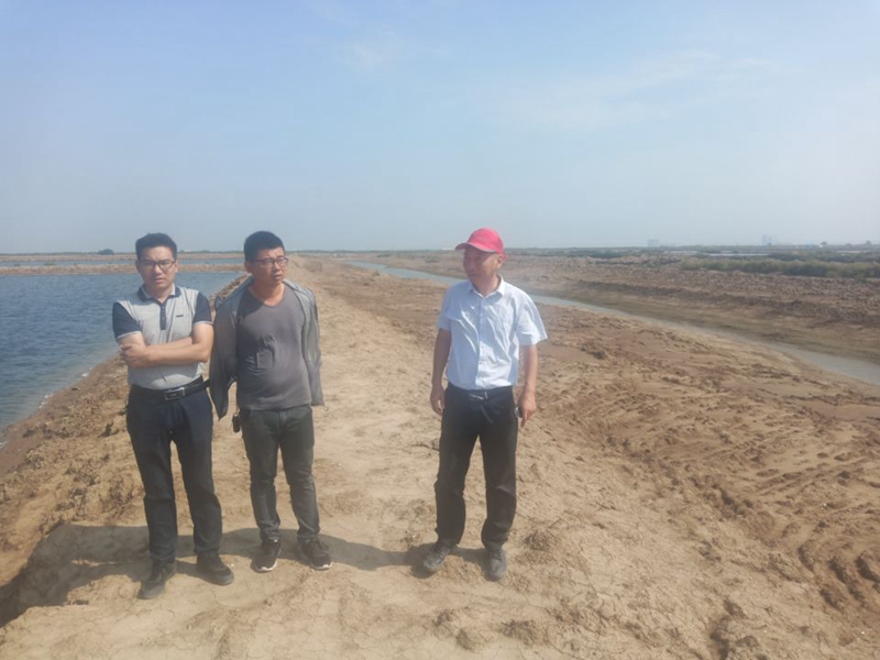 養殖池邊,工作人員仔細的對河道清淤進行現場勘查,確保排水通暢。