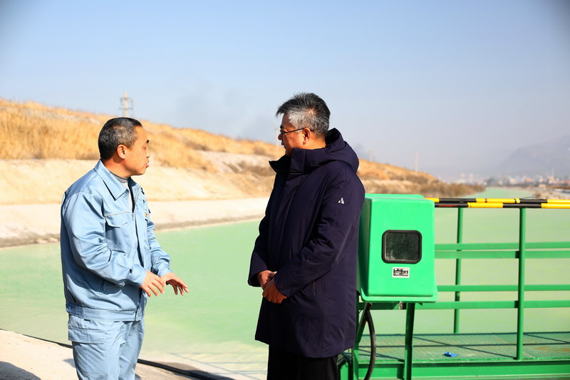 針對鈣液原料水環保參數超標等問題,董事長王德志一行現場勘察堿業公司氨堿上清液,堿業公司渣場管理處主任盧全才等領導詳細介紹近期堿廠的環保整改措施,首先是進一步做好酸堿平衡,確保原料水PH值堿度指標不超標,其次是降低氨氮濃度,確保不超標。在此基礎上,堿業公司在氨堿上清液送水通道安裝水質在線監測設備,確保及時發現異常,做到第一時間處置。