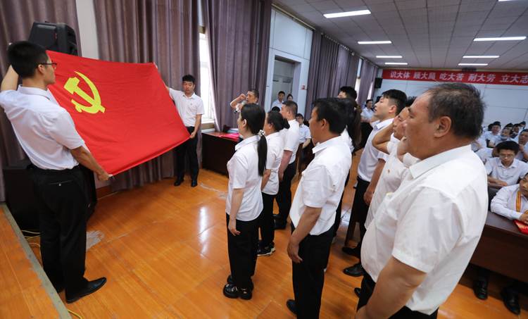 ? ? ? 會上,預備黨員舉行了入黨宣傳儀式;對2022--2023年度優秀黨務工作者、優秀共產黨員進行了表彰;對2023年“大干二季度、沖刺雙過半”立功競賽中特別獎、先進集體、先進班組和先進個人進行了表彰。(徐宣 徐工)